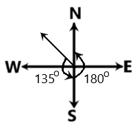 A man is standing facing north-west. If he first turns 135° counter-clockwise and then 180° clockwise, which way will he be facing now?