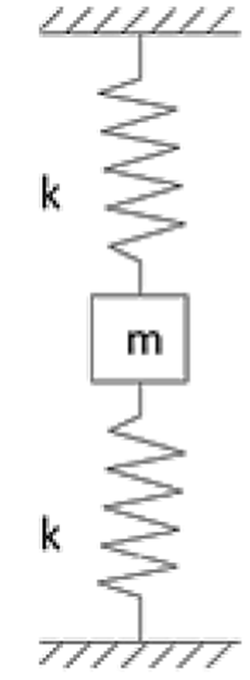 When a mass is connected between two springs, and both oppose displacement:keq=ktop+kbottom=k+k=2kNatural Frequency Formula:ωn=mkeq=m2kFinal Answer:ωn=m2kInformation Booster:1.Both springs act together, increasing total stiffness.2.If in series: keq=2k, so frequency would be lower.3.Natural frequency units: rad/s4.Frequency in Hz:fn=2πωn=2π1m2k