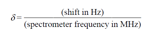 units express the amount by which a proton resonance is shifted from TMS, in parts per million (ppm), of the spectrometer’s basic operating frequency.