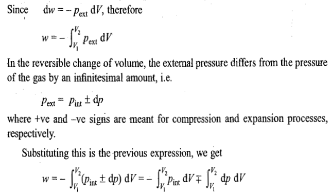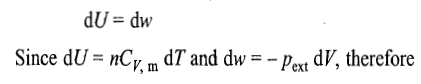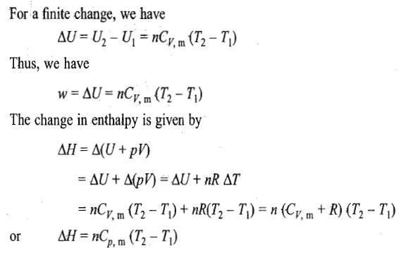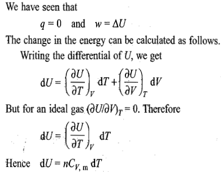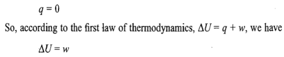 If there is an expansion, w will be negative and, therefore, ΔU will also be negative, i.e. there will occur a decrease in the internal energy of the system and hence a decrease in temperature will be observed. This amounts to the fact that the work is done by the system at the expense of internal energy.If there is a compression, w will be positive and, therefore, ΔU will also be positive, i.e., there will occur an increase in the internal energy, and hence an increase in temperature will be observed. Here, the work is done by the surroundings on the system, which is stored as the internal energy.