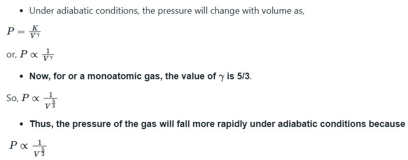 In an adiabatic process, monatomic gases have an idealised γ-factor (CP/CV) of 5/3.