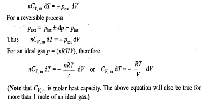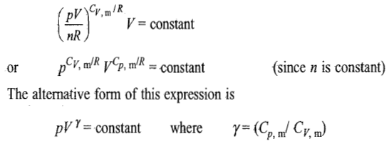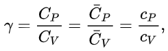 the molar heat capacity (heat capacity per mole), and c the specific heat capacity (heat capacity per unit mass) of a gas. The suffixes P and V refer to constant-pressure and constant-volume conditions respectively.