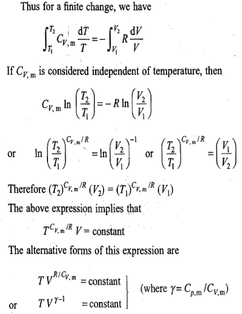 The integration in the above expression cannot be performed directly, because Pint is a function of both T and V and both variables are changing in an adiabatic expansion or compression process. However, if the final temperature is available, the values of q, w, ΔU and ΔH can be determined using the above equations. However, if the final temperature is not available, but the final pressure or volume is available, the first step is to calculate the final temperature from the expression which relates the initial and final temperatures to the respective volumes or pressures. Such expressions can be derived as follows.