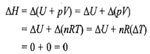 Hence in an isothermal expansion or compression process, heat is converted into work and vice versa. Thus, if heat is supplied to the system (q positive), the equivalent amount of work is done by the system (w negative), and if some work is done on the system (w positive), the equivalent amount of heat is given out (q negative). The enthalpy change of the system is also zero as