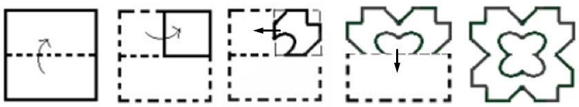 The sequence of folding a piece of paper and the manner in which the folded paper has been cut is shown in the given figures. How would this paper look when unfolded?
