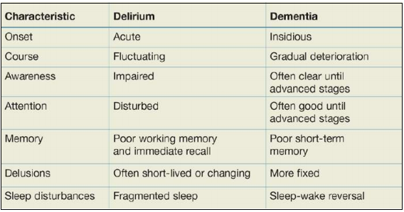 Difference between Delirium and Dementia: