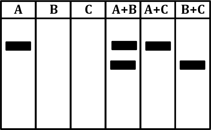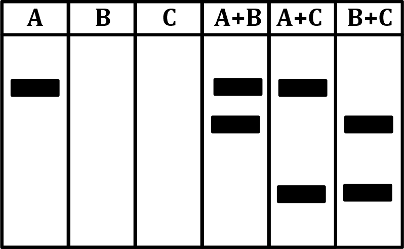 - C: Band due to A autophosphorylating; C does not contribute to the band.