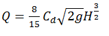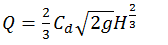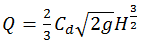 A rectangular suppressed weir is a device used to measure stream flow in an open channel. For a rectangular suppressed weir flowing free, the discharge Q is related to the head H over the weir as __________.