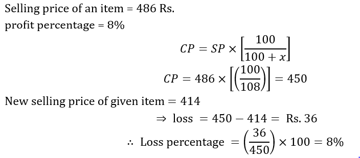 A retailer sells an item for Rs.486 and he makes 8% profit. If he were to sell that item for ?414, then he would make: