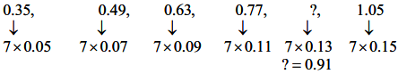 0.35, 0.49, 0.63, 0.77, ?, 1.05