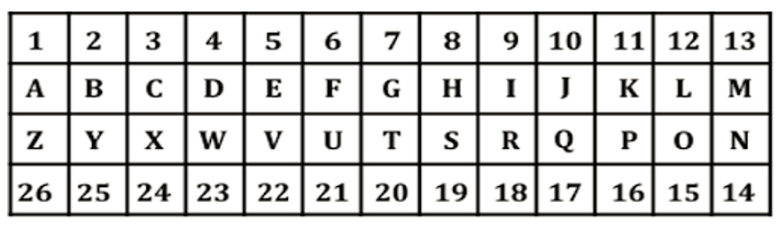 B + 5 = G, G + 5 = L, L + 5 = Q, Q + 5 = V, V + 5 Z