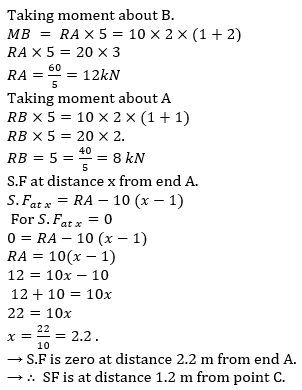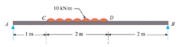 A simply supported beam carrying a uniformly distributed load of 10 kN/m is shown in the figure. Determine the distance at which shear force is equal to zero from point C.