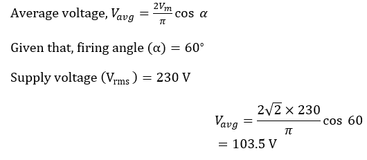 A single-phase full converter is supplied from 230 V, 50 Hz source. Load is R-L load. At α = 60°, calculate the average dc voltage.