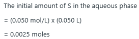 Given, a 0.05M aqueous solution of the solute in a 50mL sample, the initial amount of solute in the aqueous phase: