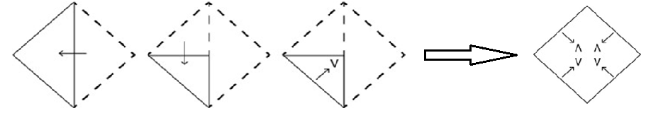The sequence of folding a piece of paper and the manner in which the folded paper has been cut is shown below. Select the option figure that would most closely resemble the unfolded form of the paper.