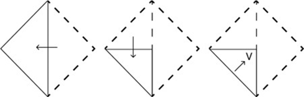 The sequence of folding a piece of paper and the manner in which the folded paper has been cut is shown in the given figures. How would this paper look when unfolded?