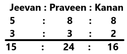 The total sum of ₹17,600 is divided among Jeevan, Praveen, and Kanan in such a way that: