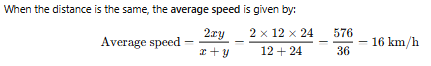 Explanation of options: (a) ✘ 13 is an incorrect approximation and doesn’t follow the formula. (b) ✘ 18 is closer to the higher speed but incorrect as average. (c) ✔ Correctly computed using harmonic mean formula for equal distances. (d) ✘ 14 is a miscalculated average not based on the correct method.