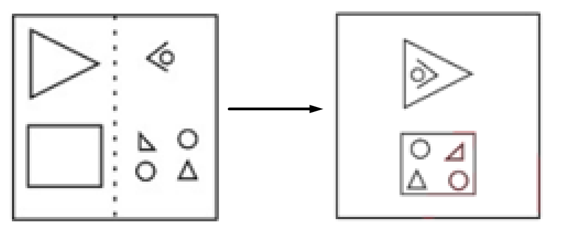 A transparent sheet with a pattern is given. Choose from the four alternatives as to how the pattern would appear when the transparent sheet is folded at the dotted line.