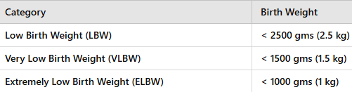 Birth weight classification is an important indicator of neonatal health and survival. The World Health Organization (WHO) categorizes newborns based on their birth weight: