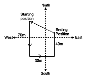 A woman walks 70 meters to the south of her house.