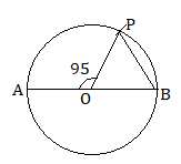 AB is the diameter of the circle with center O. ∠AOP = 95°.