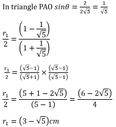 ABC is a right - angled triangle with ∠ABC = 90°. The centre of the incircle of the given triangle is at O, whose radius is 2 cm. Two more circles with centres at O1 and O2, touch this circle and the two sides as shown in the figure given below.