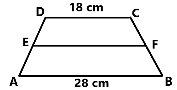 In a trapezium, the line joining the midpoints of the non-parallel sides (EF) is parallel to the parallel sides and its length is the average of the lengths of those sides.