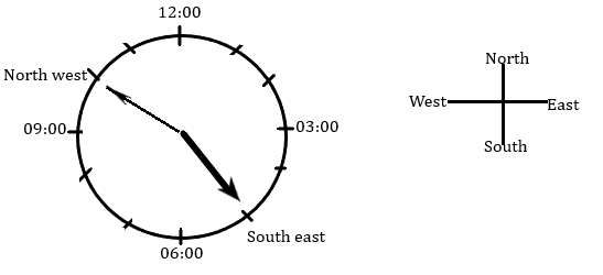 From the above figure we can say that hour hand points South east.