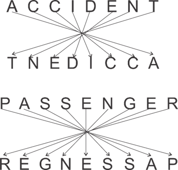 ACCIDENT is related to TNEDICCA in the same way as PASSENGER is related to ‘______’.