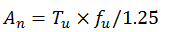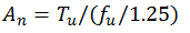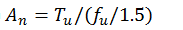 Strength of Tension MemberTu=1.25fuAnet(Based on Net Area Cracking)Anet=fu/1.25TuTu=1.1fy×Ag(Based on Gross-Area Yielding)Fu=>ultimate strengthfy=>yield strengthAnet=>Net AreaAg=>Gross Area