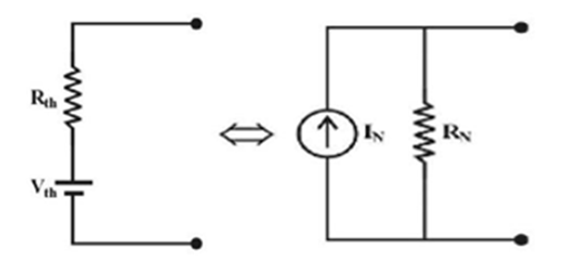 By Norton’s theorem, any linear circuit consisting of multiple power sources and resistors can be replaced by a constant current source in parallel with a single resistor.