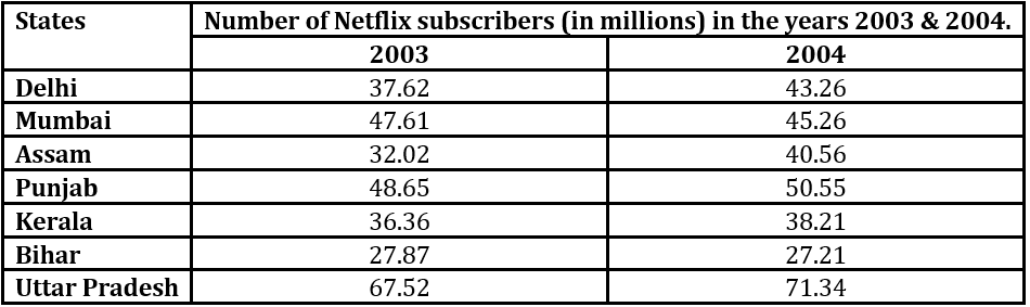 According to the given table, which State witnessed maximum change in the number of subscribers for Netflix Channel from 2003 to 2004.