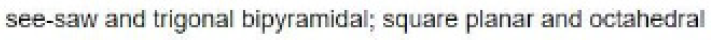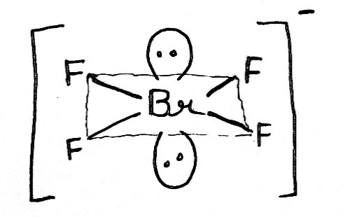 In the molecule [BrF4]- , for example, the central bromine atom has four ligands; the coordination number of bromine is four. In addition to the four ligands, bromine also has two lone pairs in this molecule. Thus, the steric number is 4 + 2=6. When 6 valence electron pairs surround a central atom, they adopt an octahedral molecular geometry. Octahedral molecular geometry also called square bipyramidal describes the shape of compounds with six atoms or groups of atoms or ligands symmetrically arranged around a central atom, defining the vertices of an octahedron. The bond angle is 90 degrees.