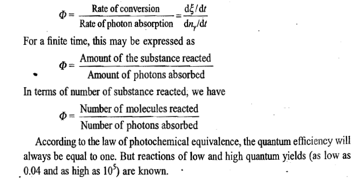 An important parameter of a photochemical reaction is the quantum efficiency or quantum yield which is defined as