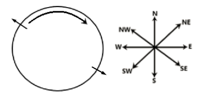 Kapil starts from point A and drives 9 km towards west. He then takes a right turn, drives 1 km, turns right and drives 5 km. He then takes a left turn and drives 3 km. He then takes a left turn and drive 5 km. He then takes a right turn and drives 8 km. He takes a final right turn, drives 9 km and stops at point P. How far (shortest distance) and towards which direction should he drive in order to reach point A again (all turns are 90° turns only unless specified)?