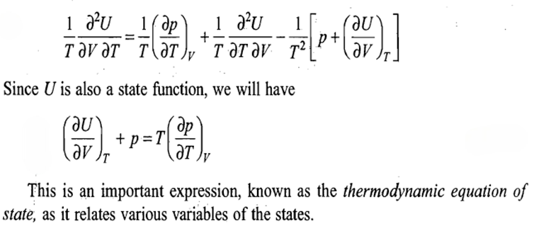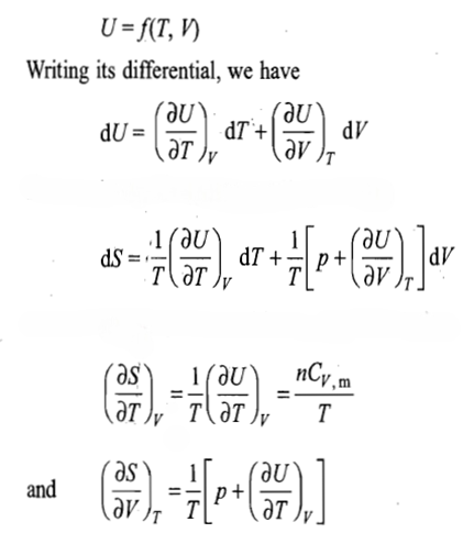The differential dU can be replaced in terms of dT and dV. This can be done by taking U as a function of temperature and volume.