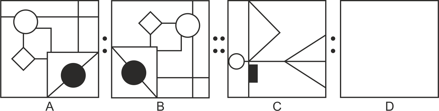 Figure A is related to B in a certain pattern. Following the same pattern, figure C is related to D. Study the pattern and select the figure which should be placed in place of D.