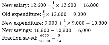An executive earns a salary of Rs. 12,600 every month, and he spends 5/7 of it. If his salary increases by 1/3 and his spending increases by 1/5 of th