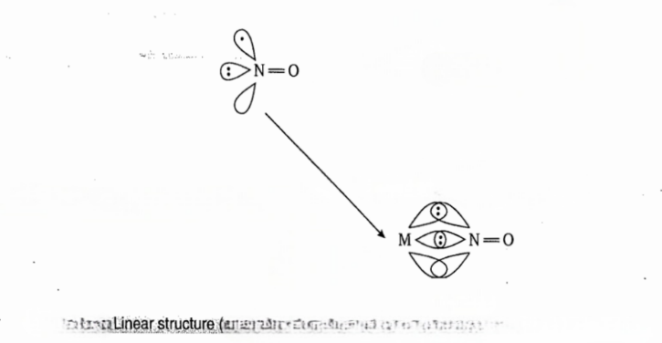 In majority of nitrosyl complexes the MNO unit is linear. When NO acts as 3e- donor, the M-NO unit is linear. In the linear structure, NO transfers one electron to metal resulting in decrease in oxidation state of metal and formation of NO+ ion.