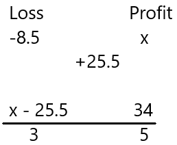 The weighted average profit/loss percentage is calculated using the given ratio of cost prices.