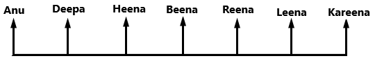 Anu, Beena, Deepa, Heena, Kareena, Leena and Reena sit in a straight line, facing north. Kareena sits third to the right of Beena, who sits second to the right of Deepa. Reena sits to the immediate left of Leena. Anu sits second to the left of Heena. Three of the following four are alike in a certain way based on the given arrangement and thus form a group. Who among the following do NOT belong to that group?