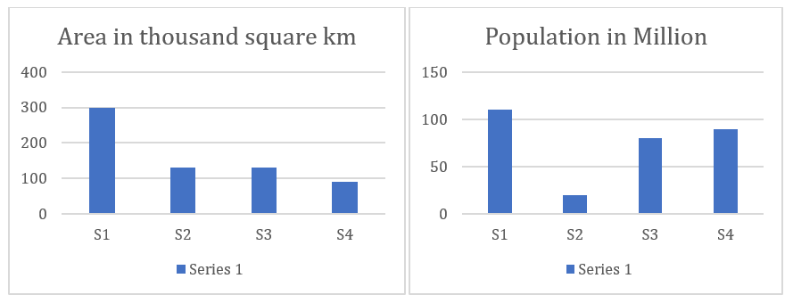 - S1: Population = P1, Area = A1, Density = P1/A1,