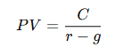 This formula assumes perpetual and growing cash flows, starting one year from now.
