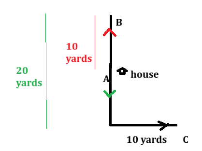 Given - Arun walks 10 yards straight from his house which is facing north and then he walks 20 yards in the reverse direction.