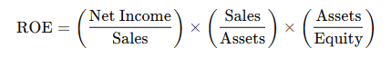 ROE = Net Profit Margin × Asset Turnover × Equity Multiplier