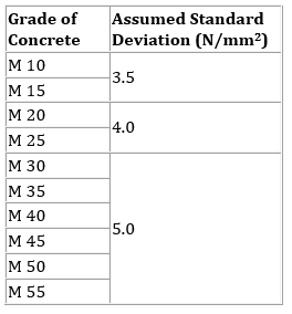 As per IS 10262 : 2009, what is the assumed standard deviation in MPa a M 30 concrete?
