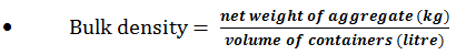 The bulk density is the weight of material in a given volume, and for the purpose of this standard, it is measured in kilograms per liter.