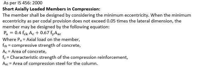 As per IS 456:2000, short axially loaded RC column members using mild steel are designed by the equation __________,