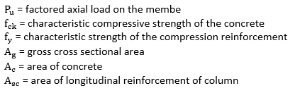 As per IS 456:2000, short axially loaded RC column members using mild steel are designed by the equation __________, where,